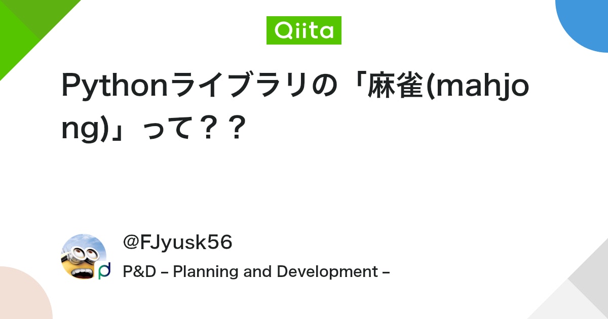 Pythonライブラリの「麻雀(mahjong)」って?? - Qiita